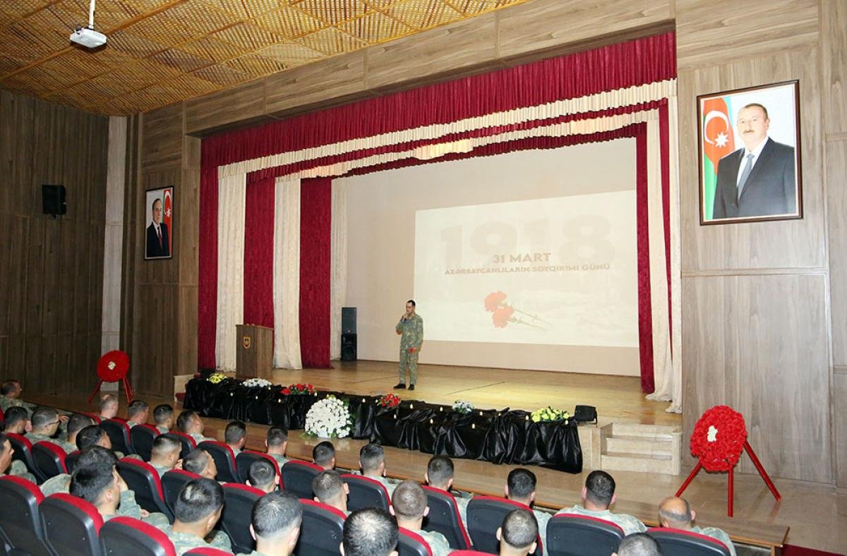Müdafiə naziri general-polkovnik Zakir Həsənovun tapşırığına əsasən, Azərbaycan Ordusunun birlik, birləşmə, hərbi hissə, xüsusi təyinatlı təhsil müəssisələrində 31 Mart - Azərbaycanlıların Soyqırımı Günü ilə əlaqədar silsilə anım tədbirləri keçirilib.