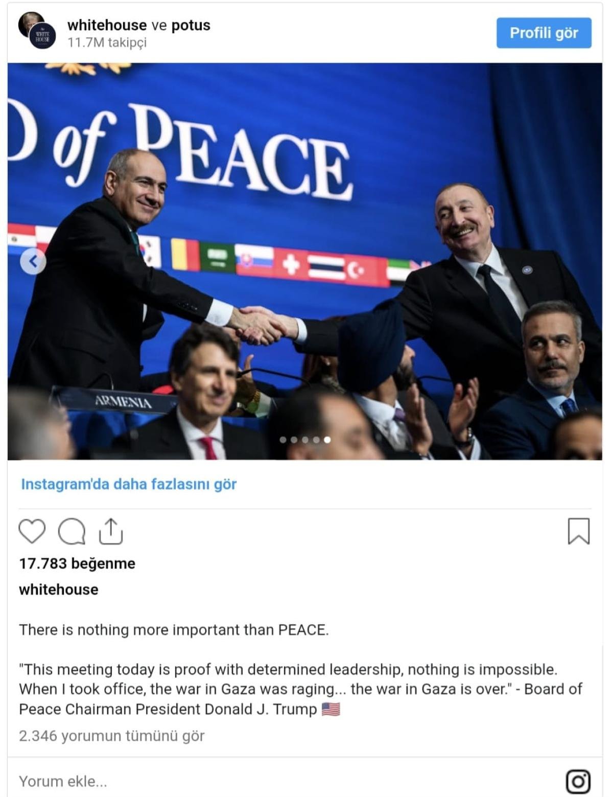 ABŞ Prezidenti Donald Trampın administrasiyası Ağ Evin sosial şəbəkələrdəki səhifəsində ötən gün Vaşinqtonda keçirilən Sülh Şurasının birinci iclası ilə bağlı paylaşım edib.