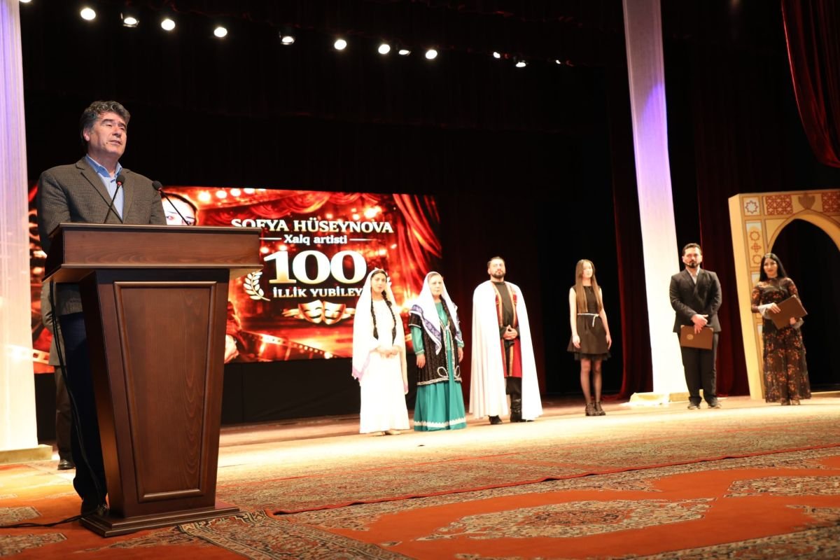 Heydər Əliyev Sarayında keçirilən tədbiri giriş sözü ilə açan Naxçıvan Muxtar Respublikası Mədəniyyət nazirinin müavini, nazir vəzifələrini icra edən Həsən Seyidov qeyd edib ki, bu gün 100 illik yubiley münasibətilə biz təkcə bir sənətkarın xatirəsini yad etmirik. Biz bir məktəbi, bir ənənəni, sənətə sədaqətin simvolunu anırıq. Sofya Hüseynovanın yaratdığı sənət irsi gələcək nəsillər üçün qiymətli xəzinədir. Onun adı Azərbaycan mədəniyyət tarixində daim hörmət və ehtiramla çəkiləcəkdir.