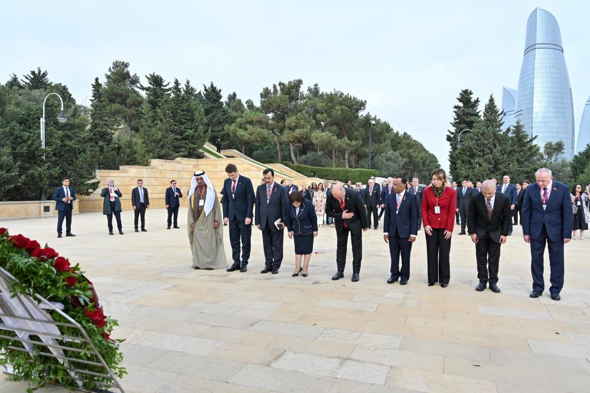 Beynəlxalq Parlament Konfransının iştirakçıları Fəxri xiyabanı və Şəhidlər xiyabanını ziyarət ediblər - FOTO