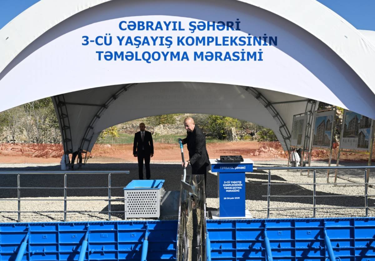 Azərbaycan Prezidenti İlham Əliyev oktyabrın 28-də Cəbrayıl şəhərində ikinci və üçüncü yaşayış komplekslərinin təməlini qoyub.