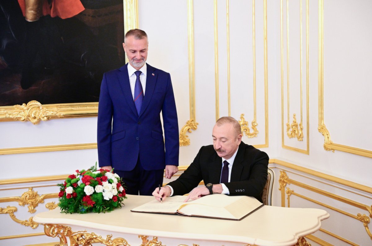 Azərbaycan Prezidenti xatirə kitabını imzaladı.