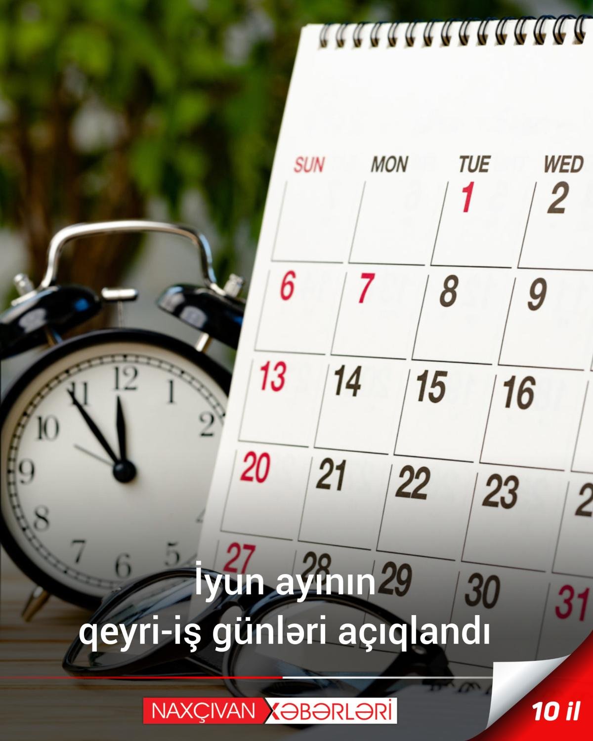 İyun ayında qeyri-iş günlərinin sayı məlum olub.
