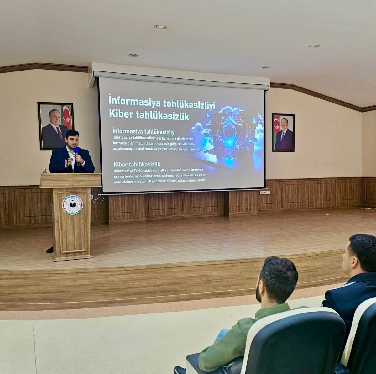 Naxçıvan Dövlət Texniki Kollecinin iclas zalında keçirilən tədbirdə muxtar respublikadakı dövlət qurumlarının İT mütəxəssisləri, informasiya təhlükəsizliyi üzrə məsul şəxslər və tələbələr iştirak edib.
