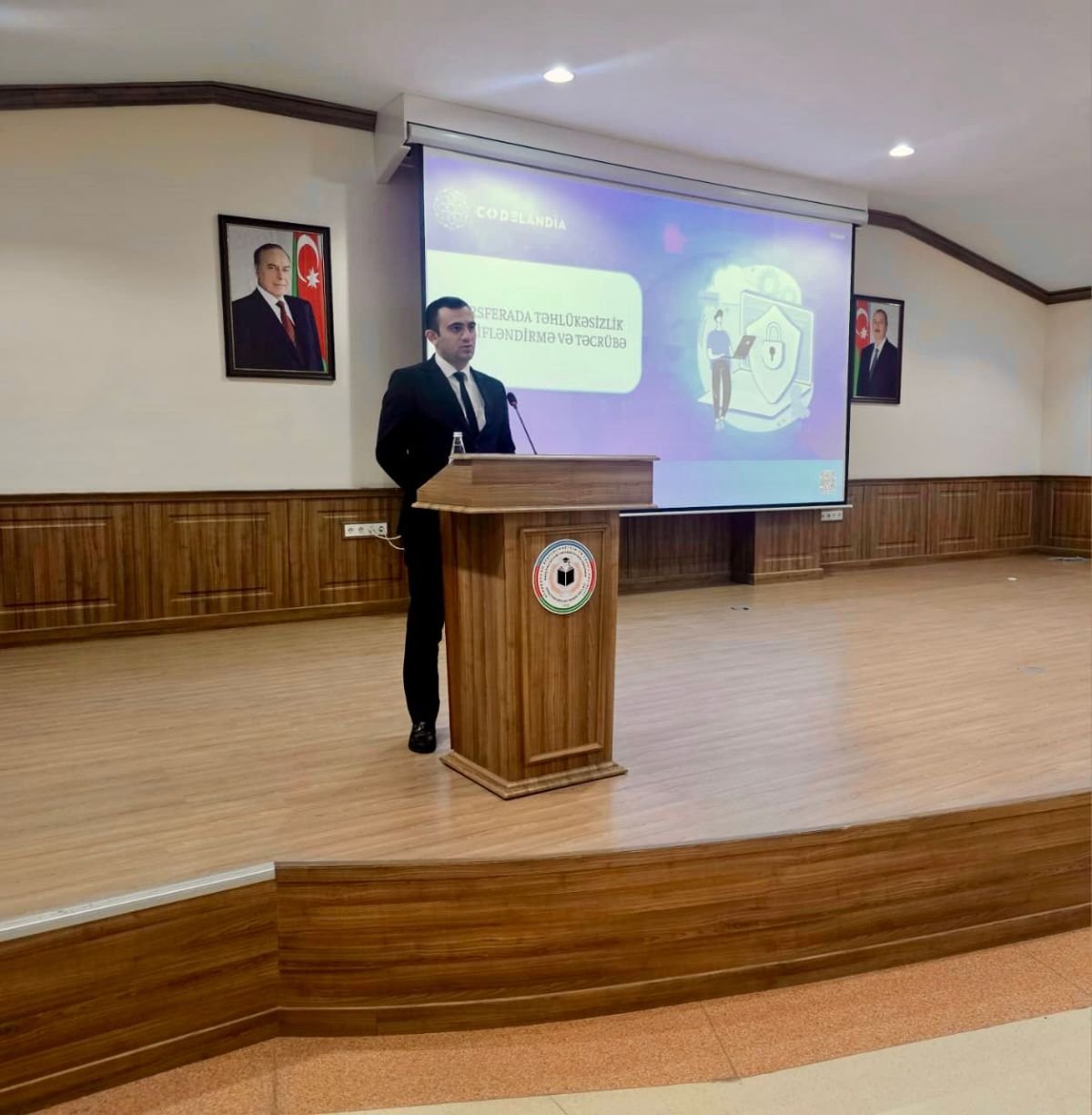 Təlim zamanı “Codelandia” MMC-nin əməkdaşları Toğrul Xəlilov və Rüstəm İsmayılov kibertəhlükəsizlik sahəsində aktual mövzular üzrə təqdimatlarla çıxış ediblər. Mütəxəssislər tərəfindən iştirakçılara informasiya təhlükəsizliyi və kibergigiyena prinsipləri, fərdi məlumatların qorunması, şifrə təhlükəsizliyi, fişinq hücumlarından müdafiə üsulları, sosial mühəndislik risklərinin azaldılması, eləcə də açıq mənbə məlumatlarının (OSINT) kibertəhlükəsizlikdə rolu, kiberhücumların proqnozlaşdırılması və risklərin erkən aşkarlanması istiqamətində praktik tövsiyələr təqdim olunub.