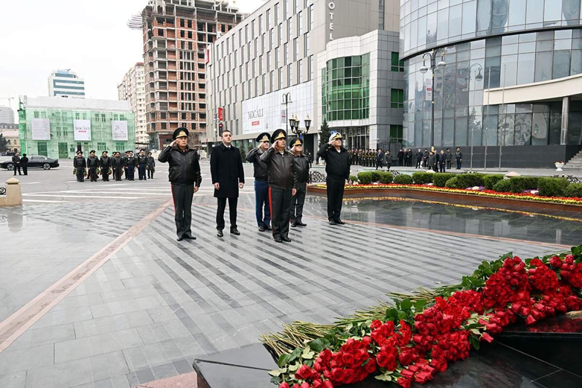 Müdafiə Nazirliyinin rəhbərliyi tərəfindən abidə önünə gül dəstələri düzülüb, faciə qurbanlarının xatirəsinə ehtiram nümayiş etdirilib.