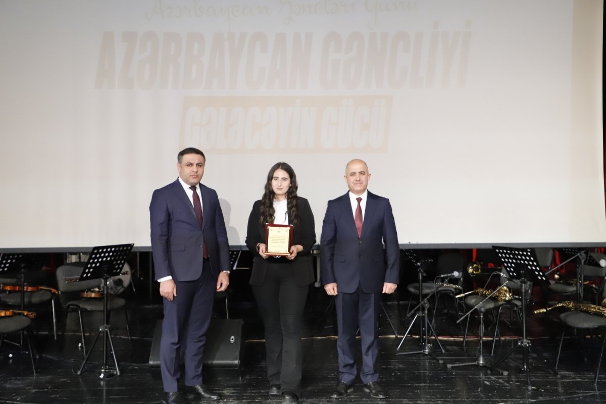 Daha sonra müxtəlif sahələrdə fərqlənmiş gənclər, o cümlədən gənclərlə iş sahəsində fəal əməkdaşlığı olan təşkilatların nümayəndələri mükafatlandırlıblar. Mükafatlar nazir müavini Məcid Seyidov və Nazirlər Kabineti Aparatının Humanitar məsələlər şöbəsinin müdiri Tarverdi Məmmədov tərəfindən təqdim olunub.