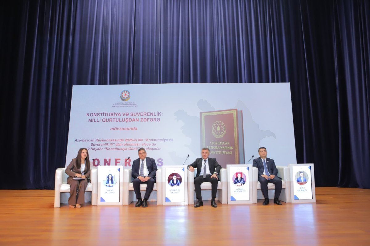 Tədbir çərçivəsində “Hüquqi dövlətin təməli – Konstitusiya və milli suverenlik” və “Zəfərdən suverenliyə – dövlətçilik, gənclik və milli ideya” mövzularında iki panel müzakirə keçirilib. Konfransın bədii hissəsində musiqi və rəqs nömrələri təqdim olunub, iştirakçılar arasında fikir mübadiləsi aparılıb.