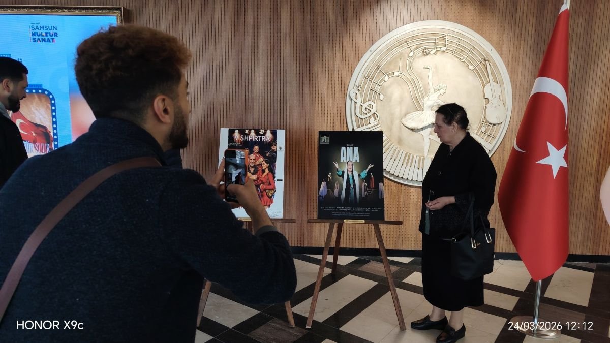 Şəhərdə, ən əsası da Qara dənizin təqribən yüz metrliyində salınan Samsun Böyükşəhər Bələdiyyəsinin Sənət Mərkəzinin geniş foyesində sərgilənən Hüseyn Cavidin “Ana” əsərinin afişası ilk baxışdan diqqəti çəkirdi. Tamaşada isə xalq artisti Yasəmən Ramazanova, gənc aktyorlar Məmməd Mehdiyev,Şölə Alışova, İsmayıl Mirzəcanov, Saynur Babayev, Ələsgər Quliyev, Əlzamin Abbasov və Seyfəddin Məmmədli oynayırlar.