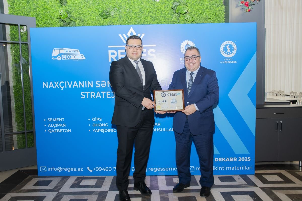 Tədbir çərçivəsində Reges Tikinti Materialları Caspian Energy Club tərəfindən “Energy for Business” təşəkkür mükafatı və sertifikatı ilə təltif olunub.