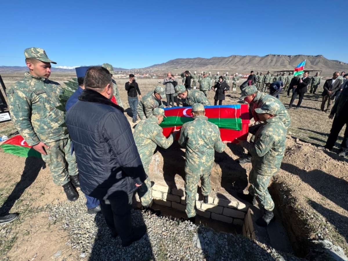 Şəhidin tabutuna bükülən Azərbaycan bayrağı onun tək övladı olan oğlu Fəxrəddin Əhmədova təqdim edilib.