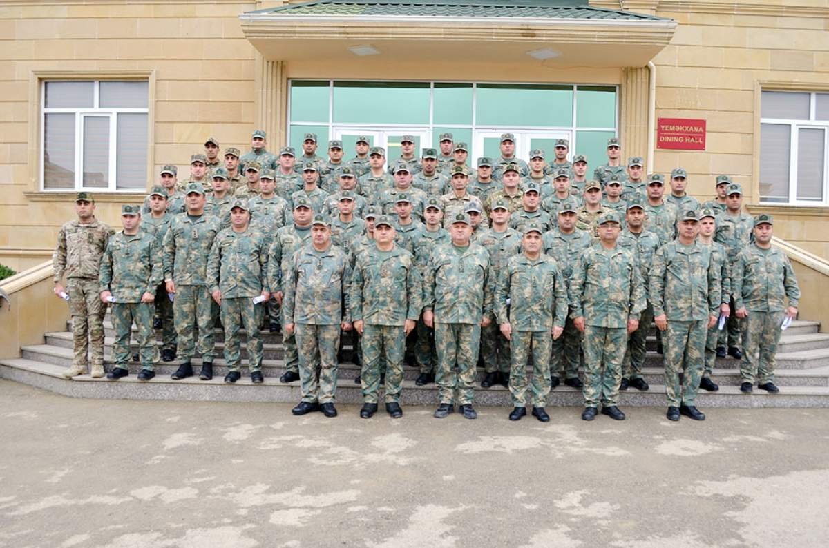 Sonra zabit təkmilləşdirmə kursunu müvəffəqiyyətlə bitirən, təlim və tədrisdə yüksək nəticələr əldə edən dinləyicilərə fəxri fərman və sertifikatlar təqdim olunub, kurs birincisi mayor Pərviz Quliyev tərəfindən yaş kötüyünə rəmzi emblem vurulub.