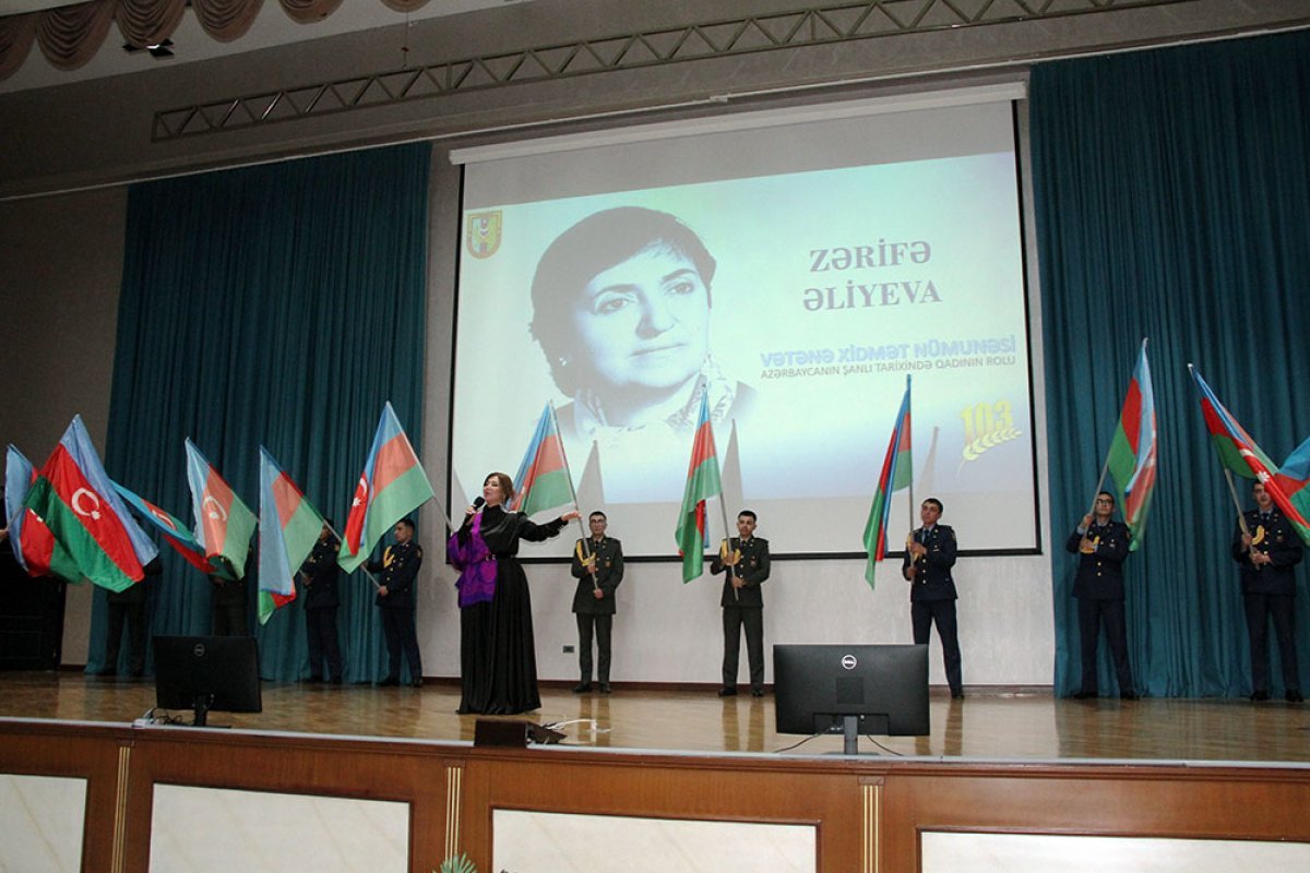 Heydər Əliyev adına Hərbi İnstitutda təşkil olunan “Vətənə xidmət nümunəsi: Azərbaycanın şanlı tarixində qadının rolu” adlı xatirə gecəsində xalqımızın Ümummilli Lideri Heydər Əliyevin, görkəmli oftalmoloq-alim Zərifə xanım Əliyevanın və Vətən uğrunda canlarından keçmiş şəhidlərimizin əziz xatirəsi bir dəqiqəlik sükutla yad edilib. Azərbaycan Respublikasının Dövlət Himni səsləndirilib.