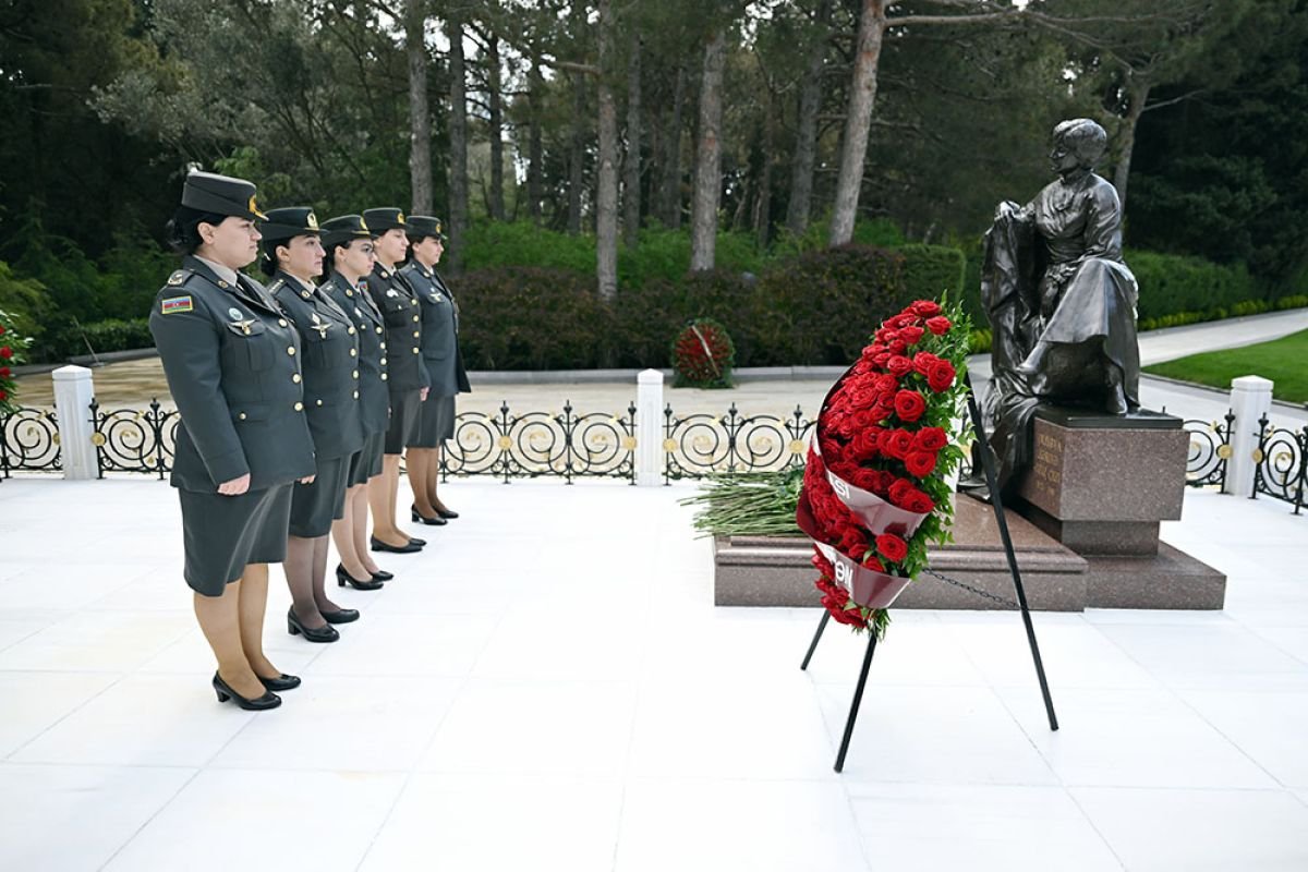 Azərbaycan Ordusunun bir qrup qadın hərbi qulluqçusu Zərifə xanım Əliyevanın Fəxri xiyabandakı məzarını ziyarət edib, önünə əklil qoyub və əziz xatirəsinə böyük ehtiram nümayiş etdiriblər.