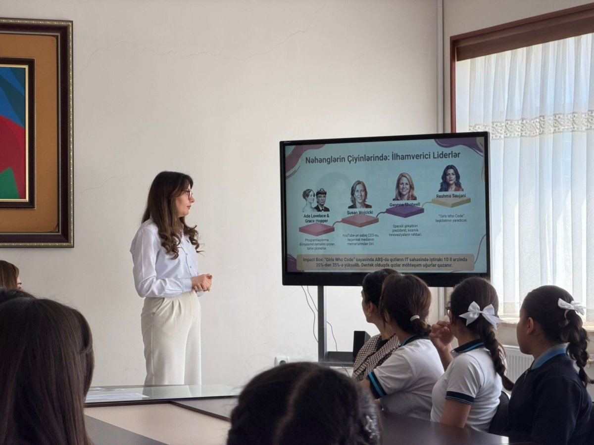 Tədbirdə həmin məktəbin məzunları olan Rəqəmsal Könüllülər Qəmzə Rzayeva və Səidə Əliyeva öz təcrübə və fikirlərini bölüşüblər. Onlar texnologiya sahəsində qızların uğur qazanması üçün mövcud imkanlardan, rəqəmsal bacarıqların əhəmiyyətindən və qarşıya çıxan çətinliklərin öhdəsindən gəlmə yollarından danışıblar. Sonda məktəbli qızlara daim öyrənmək, özlərinə inanmaq və gələcəyin peşələrinə cəsarətlə addım atmaq tövsiyə olunub.
