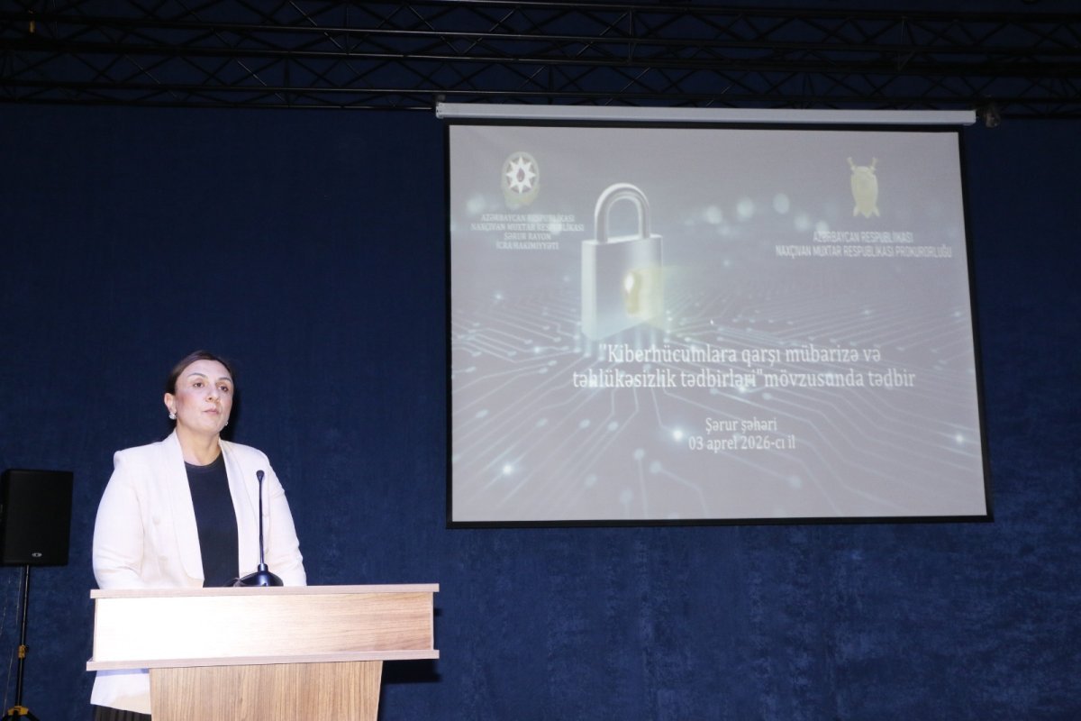 Tədbirdə Muxtar Respublika Prokurorluğunun Hüquqi təminat və insan hüquqları məsələləri şöbəsinin rəisi baş ədliyyə müşaviri Faiq Səfərov, Naxçıvan Dövlət Universitetinin İnformasiya texnologiyaları şöbəsinin müdiri Hüseyn Əsgərli və Azərbaycan Respublikası Mərkəzi Bankının Naxçıvan MR İdarəsinin Maliyyə bazarı iştirakçılarının hüquqlarının müdafiəsi bölməsinin əməkdaşı Pərviz Babayev mövzu ilə bağlı çıxış edərək - Kiberhücumların, şəxslərə, bizneslərə və təşkilatlara böyük zərər verə biləcək ciddi təhdidlər olduğunu və bu hücumların həssas məlumatların oğurlanmasına, məlumatların məhv edilməsinə və ya sistemlərin pozulmasına səbəb olduğunu lakin, kiberhücumların növləri haqqında məlumatlı olmaq və qabaqlayıcı tədbirlər görmək bu təhdidlərin qarşısını almağa və kiber təhlükəsizliyi gücləndirməyə köməklik edə biləcəyini bildirmişlər.