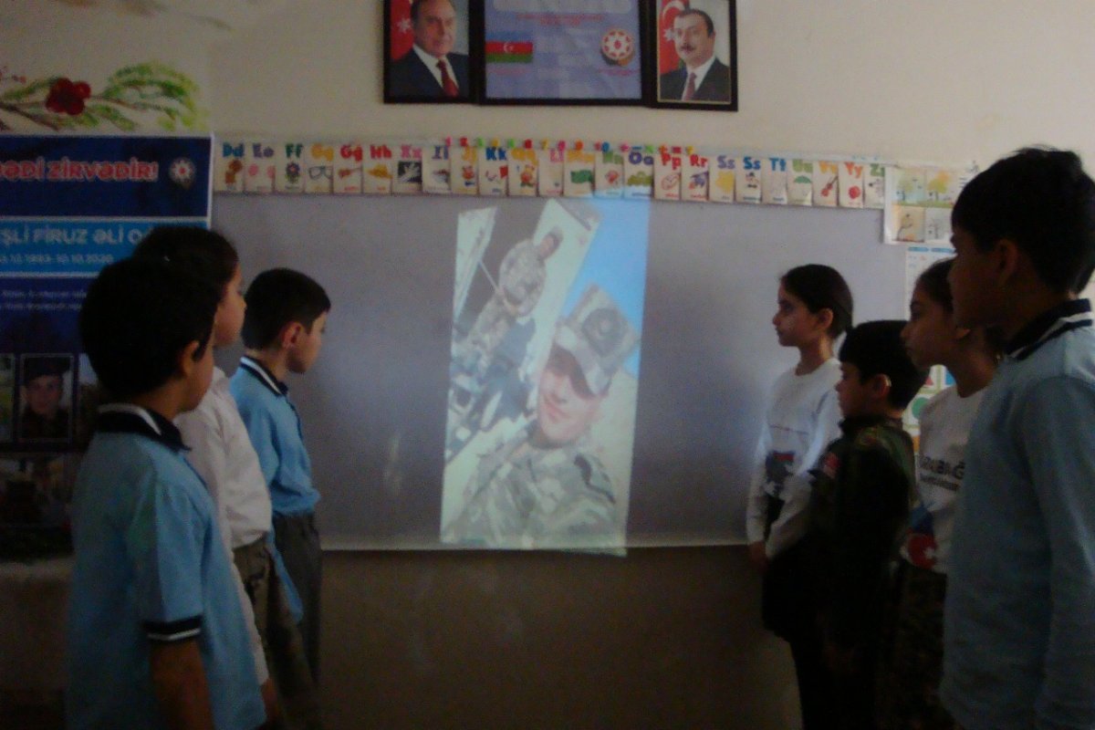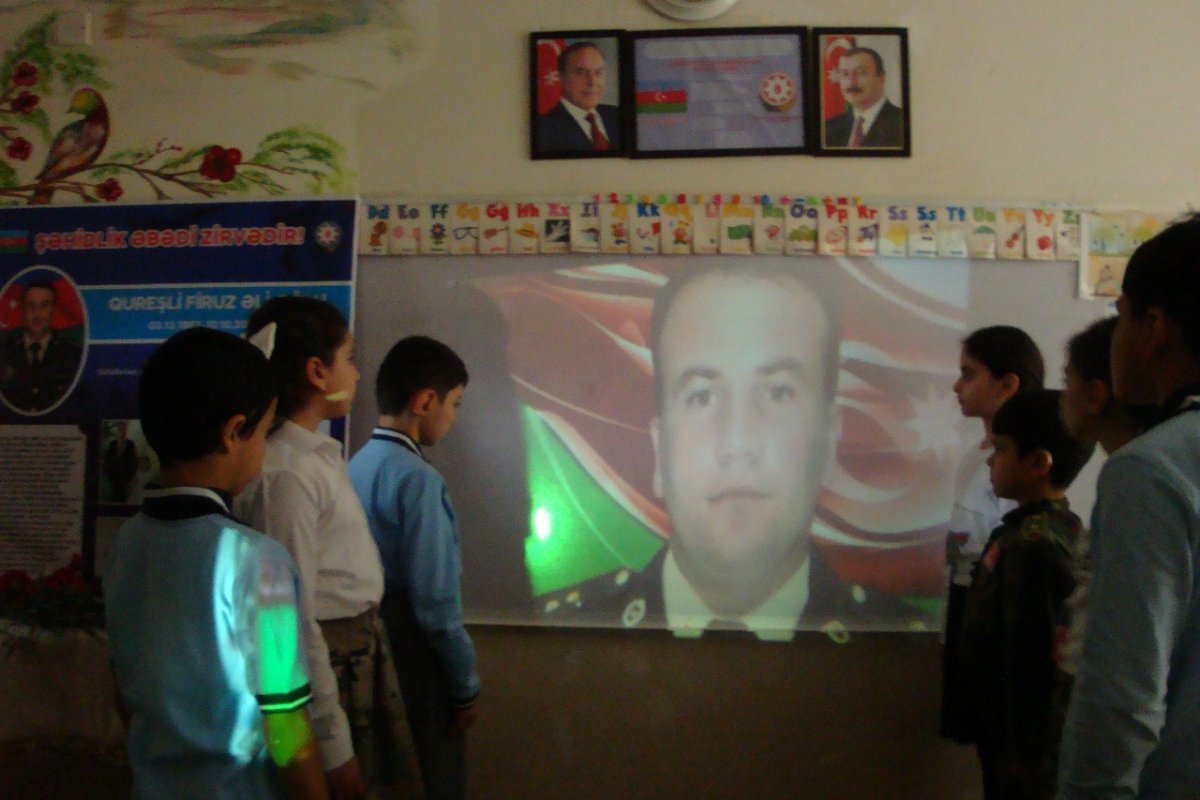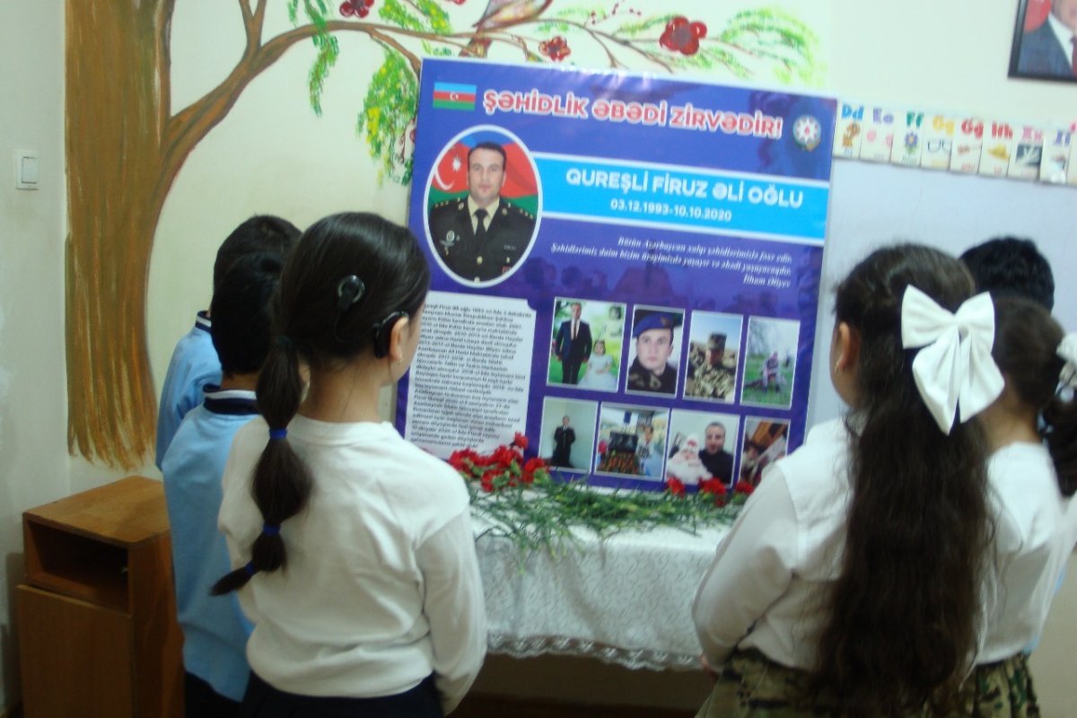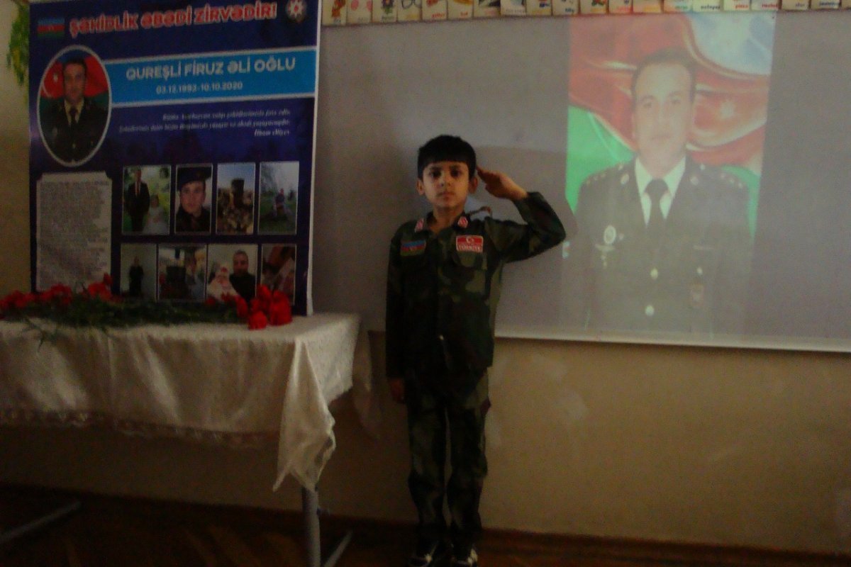 Şagirdlərə qəhrəmanlıq nümunəsi kimi təqdim olunan Firuz Qureşlinin xatirəsinə həsr olunmuş videoçarxlar nümayiş etdirilib.